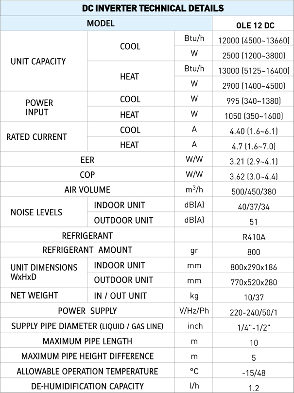 This new OLEFINI DC Inverter Air Conditioner has stylish flat panel design which creates a simplicity and sophistication that enhances any interior space.